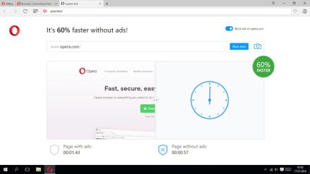 Opera adalah browser pertama yang menawarkan Native ad blocker di berbagai platfrom yang berbeda. Menurut CEO Opera, iklan online dapat menganggu dan memperlambat kecepatan browsing saat menjelajah dunia maya secara signifikan, sekarang dengan browser Opera para pengguna di harap dapat menjelajahi dunia maya dengan lebih cepat di banding dengan Google Chrome atau pun Firefox. Hasil uji coba internal dari Opera dengan menghilangkan Iklan, kecepatan opera untuk komputer mencapai 45% lebih cepat di banding Google Chrome.