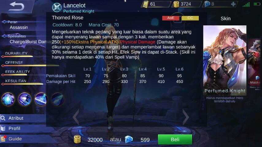 Macam-macam Skill yang dimiliki Lancelot