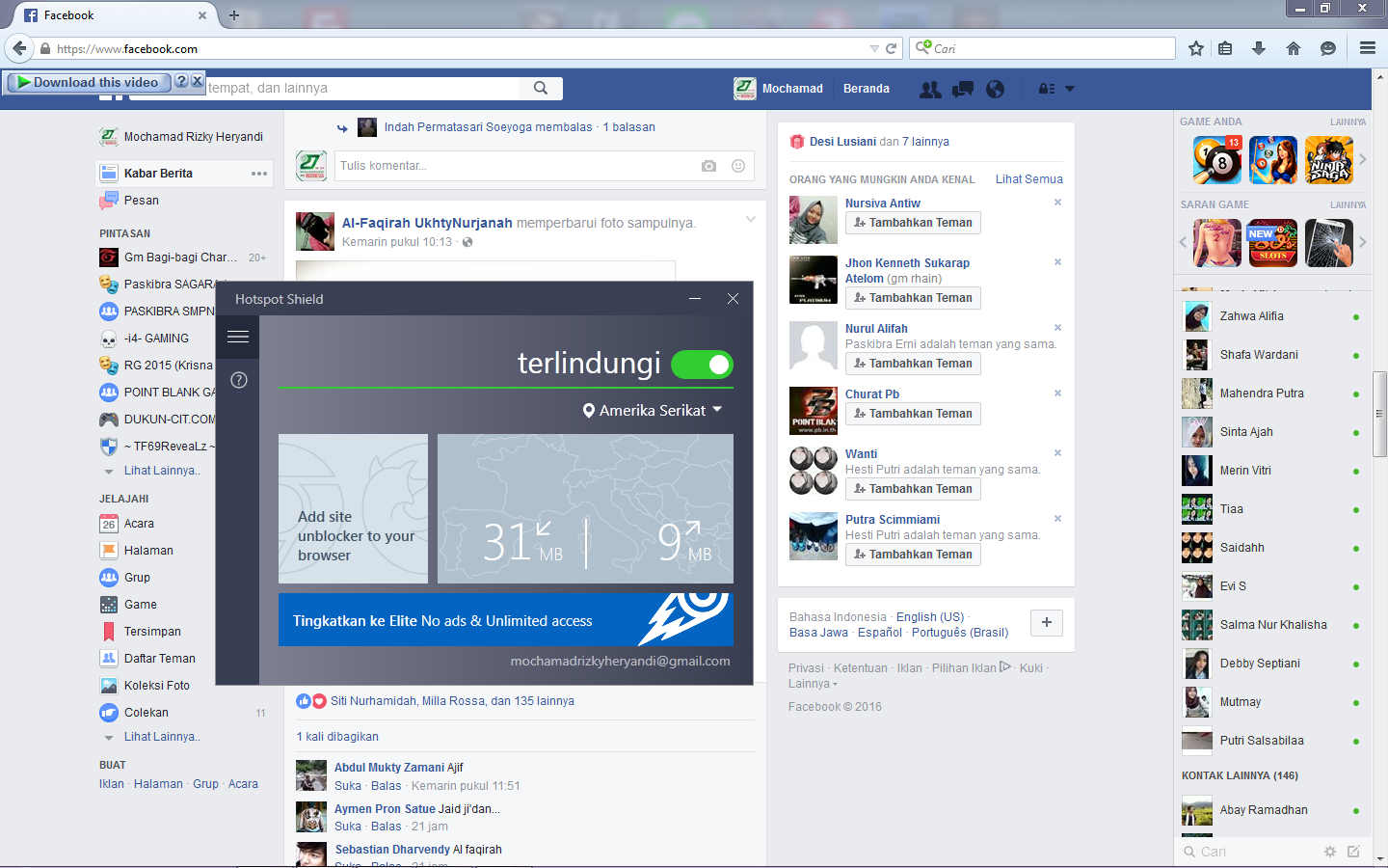 3.Udah di install? buka hotspot shield nya, klik Hubungkan ya gaiss 🙂