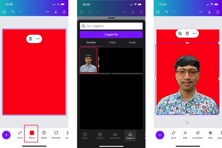 2. Unggah foto dengan latar belakang merah yang ingin Anda tambahkan efek.