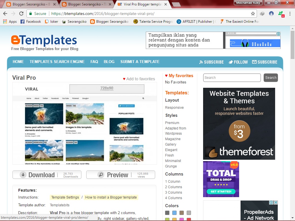 - Setelah selesai mendownload tema kalian, silahkan kunjungi situs penyedia Template untuk blogger, kali ini ciko rekomendasiin kalian buat pake Template dari BTemplates.com.