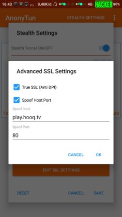 - Kemudian spoof Host di isi BUG dari videomax tersebut, di sini saya memakai Bug Play.hooq.tv, terus Spoof Portnya di isi Angka 80.