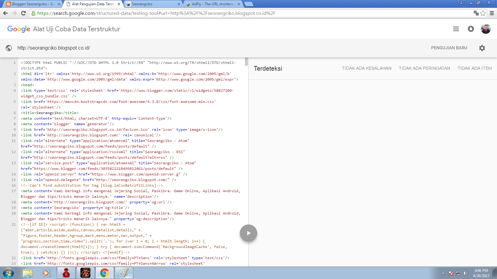 - Cara yeng kedua sedikit agak ribet namun hasilnya lebih baik daripada cara yang pertama. Caranya dengan membuka Alat pengujian data Sturktur Blog dari Google, silahkan klik disini .
