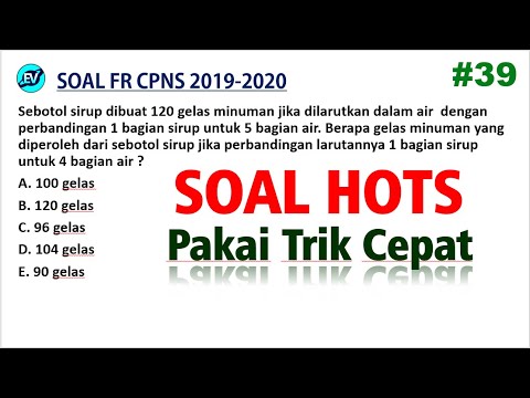 | Pembahasan Soal HOTS FR ASLI TIU CPNS 2019-2020. Soal perbandingan senilai. Soal yang dibahas: Sebotol sirup dibuat 120 gelas minuman jika dilarutkan dalam air dengan perbandingan 1 bagian sirup untuk 5 bagian air. Berapa gelas minuman yang diperoleh dari sebotol sirup jika perbandingan larutannya 1 bagian sirup untuk 4 bagian air ? A. 100 gelas B. 120 gelas C. 96 gelas D. 104 gelas E. 90 gelas Bagi yang mau bertanya dan dibuatkan pembahasan soal silahkan DM IG EDUVID di / Email: [email protected] ———————————————————— β‘οΈYuk traktir Bang EduVid ngopiβ β©Disini π πBiar tambah semangat πͺ ———————————————————— ========================== REKOMENDASI BIMBEL ONLINE ========================== ————————————— BIMBEL SAHABAT CPNS ————————————— Paket bimbingan belajar dari SAHABAT CPNS yang ditawarkan: π BIMBEL PPPK GURU π CPNS SKD PREMIUM π CPNS SKD PLATINUM π SKD SEKOLAH KEDINASAN π CPNS SKB Silahkan daftar dengan mengklik link di bawah ini agar dapat potongan harga β€΅οΈ π />(Masukkan kode EDUVID untuk dapatkan potongan harga dari setiap paket yang ditawarkan). Program belajar mandiri SKD MASTERY PREMIUM yang resmi dibawah naungan PT. Solusi Belajar Indonesia (sahabatcpns.com). Fasilitas : π40 paket latihan soal (tipe LOTS-HOTS) π 5 Paket Try Out Premium π 4 Paket Try Out Extra Premium (plus video pembahasan) π Ringkasan materi sesuai kisi kisi terbaru π Grup diskusi untuk semua member π Mentoring via telegram selama persiapan cpns (Senin-Sabtu) π 5 Fitur Unggulan : Extra Video pembahasan, Analisa pengerjaan soal, Statistik hasil , Rangking Nasional & Adanya keterangan sub materi soal. πΌ Daftar sekarang diskon menjadi 125K/tahun dengan memasukan kode voucher EDUVID Periode promo berakhir 1 Mei 2021 Daftar atau coba Gratis β€΅οΈ π /> Program belajar bersama mentor SKD MASTERY PLATINUM yang resmi dibawah naungan PT. Solusi Belajar Indonesia (sahabatcpns.com) Fasilitas : π40 paket latihan soal (tipe LOTS-HOTS) π 5 Paket Try Out Premium π 6 Paket Try Out Extra Premium (plus video pembahasan) π Ringkasan materi sesuai kisi kisi terbaru π Grup diskusi untuk semua member π Mentoring via telegram selama persiapan cpns (Senin-Sabtu) π 5 Fitur Unggulan : Extra Video pembahasan, Analisa pengerjaan soal, Statistik hasil , Rangking Nasional & Adanya keterangan sub materi soal π 20 Pertemuan via Zoom (terjadwal mulai 1 mei 2021 with Kak Yasmin, Kak Yulius dan Kk Wenda ) Mulai belajar via Zoom tanggal 1 Mei 2021 (tentatif) πΌ Daftar sekarang diskon menjadi 325/tahun dengan memasukan kode voucher EDUVID Periode promo berakhir 01 Mei 2021 Daftar atau coba Gratis β€΅οΈ π /> —————– AYO CPNS —————– Paket bimbingan belajar dari AYO CPNS yang ditawarkan: π PREMIUM π PLATINUM π BIMBEL ONLINE EKSKLUFIF π BIMBEL TATAP MUKA EKSKLUFIF Silahkan daftar dengan mengklik link di bawah ini agar dapat potongan harga β€΅οΈ π />Masukkan kode 3D1N5T atau kode AYOCPNS untuk dapatkan potongan harga dari setiap paket yang ditawarkan. —————– BISACPNS —————– Yuk segera daftarkan diri untuk ikut Tryout Akbar Nasional secara gratis, Kuliah Umum/ Webinar Gratis dari platform belajar online bisaCPNS.com dengan mengklik link pendaftaran di bawah ini: π (Untuk upgrade ke akun VIP silahkan gunakan kode voucher dan tuliskan: EDUVID Untuk dapatkan potongan harga 21K). ======= Prediksi Akurat CPNS 2021 soal skd tiu cpns 2021 soal skb cpns 2021 | |