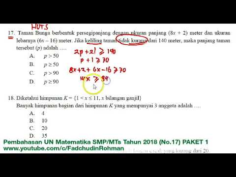 | Judul Video | Pembahasan Soal HOTS UN UNBK Matematika SMP Tahun 2018 Paket 1 (No.17) |