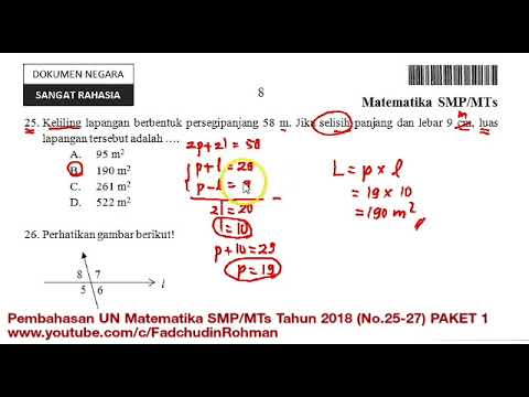 Pembahasan UN UNBK Matematika SMP 2018 Paket 1 (No.25-27)