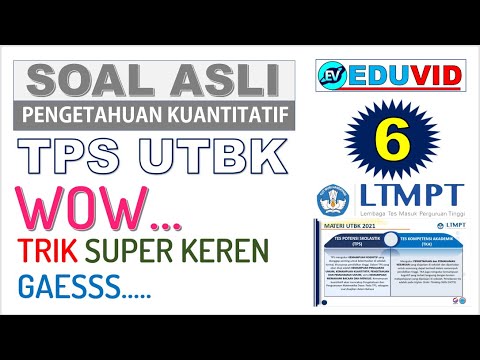 | Pembahasan Soal Asli TPS Kuantitatif (Matematika Dasar) Tahun-tahun sebelumnya untuk persiapan tes/ujian UTBK SBMPTN 2021. Prediksi TPS UTBK 2021, Kisi-kisi Soal UTBK 2021 LTMPT. Trik cepat cara menjawab soal tps kuantitatif utbk 2021. ———————————————————— ➡️Yuk traktir Bang EduVid ngopi☕ ⏩Disini 👉 🔌Biar tambah semangat 💪 ———————————————————— TRIK SUPER CEPAT PERTIDAKSAMAAN (Menentukan tanda positif negatif pada garis bilangan): 👉 U TRIK CEPAT Pertidaksamaan Nilai Mutlak: 👉 4 Kumpulan Soal UTBK 2021: 👉 /> Materi UTBK 2021 Tes Potensi Skolastik (TPS): TPS mengukur KEMAMPUAN KOGNITIF yang dianggap penting untuk keberhasilan di sekolah formal, khususnya pendidikan tinggi. DalamTPS yang akan diuji adalah KEMAMPUAN PENALARAN UMUM, KEMAMPUAN KUANTITATIF, PENGETAHUAN DAN PEMAHAMAN UMUM, sertaKEMAMPUAN MEMAHAMI BACAAN DAN MENULIS. Kemampuan kuantitatif akan mencakup Pengetahuandan Penguasaaan Matematika Dasar. PadaTPS, sebagian soal disajikan dalam Bahasa Inggris Tes Kemampuan Akademik (TKA): Mengukur PENGETAHUAN dan PEMAHAMAN KEILMUAN yang diajarkan di sekolah dan diperlukan untuk seseorang dapat berhasil dalam menempuh pendidikan tinggi. TKA juga mengukur kemampuan kognitif yang terkait langsung dengan konten mata pelajaran yang dipelajari di sekolah. Penekanan tes adalah pada Higher Order Thinking Skills (HOTS). === Persiapan UTBK 2021 Prediksi Soal UTBK 2021 | |