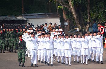 PASKIBRAKA Paskibraka adalah singkatan dari Pasukan Pengibar Bendera Pusaka dengan tugas utamanya mengibarkan duplikat bendera pusaka dalam upacara peringatan proklamasi kemerdekaan Indonesia di 3 tempat, yakni tingkat Kabupaten/Kota (Kantor Bupati/Wali Kota), Provinsi (Kantor Gubernur), dan Nasional (Istana Merdeka). Anggotanya berasal dari pelajar SMA Sederajat kelas 1 atau 2. Penyeleksian anggotanya biasanya dilakukan sekitar bulan April untuk persiapan pengibaran pada 17 Agustus. Selama waktu … Baca Selengkapnya