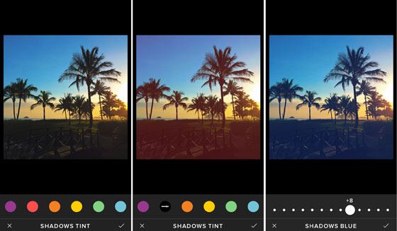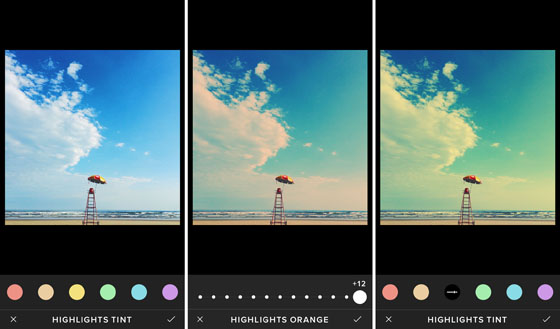 Menambahkan warna yang berbeda ke area terang gambar Anda. Ketuk warna lagi untuk mengatur intensitasnya.