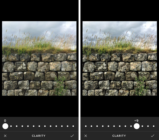 Membuat detail di foto Anda tampak lebih tajam dan lebih jelas. Dorong slider perlahan dan berhati-hatilah untuk tidak terlalu memperdalam. Ketajaman yang terlalu banyak bisa menurunkan kualitas foto, membuatnya tampak agak kasar.