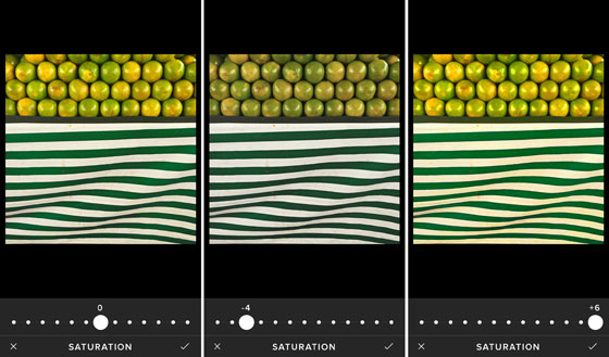 Mengontrol semangat warna pada foto Anda. Tingkatkan kejenuhan untuk membuat warna lebih semarak, atau kurangi agar lebih kurang bersemangat.