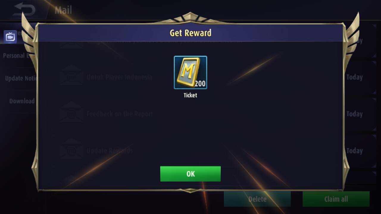 Jeng-jeng coba kamu cek email dalam game maka kamu akan mendapatkan 200 Ticket Gratis. Beberapa kasus pemain baru, aku katakan demikian karena dulu pemain old (red: pemain lama), ketika melakukan bind FB pertama kali akan mendapatkan 100 Diamond. Karena hadiah diamond banyak disalah gunakan oleh beberapa orang yang membuat akun baru dan hanya membagikan ke akun utama lewat streaming. Untuk itu hadiah perama kali bind ke FB diganti menjadi 200 Ticket. Dan karena player old belum pernah mendapatkan hadiah ticket, maka ketika melakukan bind akun Moonton bisa mendapatkan 200 ticket. Dan sebaliknya karena player jaman now sudah pernah mendapatkan hadiah ticket dari bind FB pertama kali, maka ketika melakukan bind akun Moonton beberapa orang tidak mendapatkan hadiah 200 ticket. Untuk hal ini masih dalam klarifikasi atau bisa tanya ke CS sendiri, dan jika ada beberapa player yang tidak mendapatkan 200 ticket ketika bind Akun Moonton bisa menulis IGN, ID Game+Server ID 88888888(1234), beserta SS data akun yang sudah terbind namun tidak mendapatkan hadiah ticket. Dan untuk yang mendapatkannya beri feedback juga yah agar mereka yang belum melakukannya jadi lebih percaya, hehe 🙂